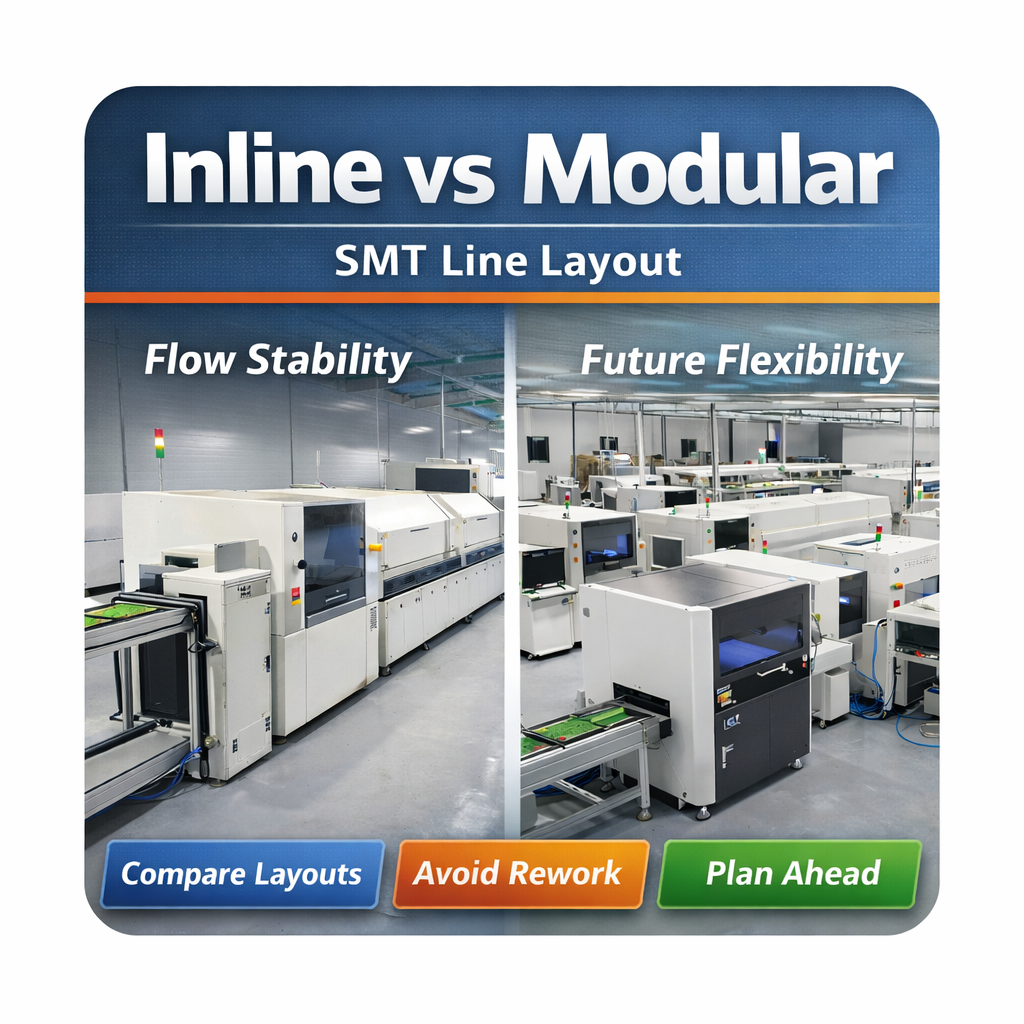 Choosing between an inline and a modular SMT line layout is therefore not a question of floor space efficiency. It is a long-term manufacturing strategy that directly affects material flow stability, changeover flexibility, system resilience, and the true cost of future expansion.